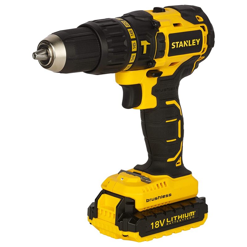 The STANLEY 13 mm Li-ion Cordless Hammer Drill Kit with Brushless Motor, featuring model number SBH201D2K-B1, stands as a pinnacle of high-performance drilling technology that encapsulates the quality, durability, and innovation synonymous with the STANLEY brand. This comprehensive kit includes a powerful cordless hammer drill featuring a brushless motor, a reliable Li-ion battery, and essential accessories, offering users a complete toolset for a wide range of drilling and fastening applications. The brushless motor integrated into the hammer drill enhances efficiency, durability, and overall performance by reducing wear and heat generation, ensuring a longer tool lifespan. Operating at precision, the 13 mm cordless hammer drill is capable of drilling into various materials, including wood, metal, and masonry, making it versatile for both professional construction sites and DIY home improvement projects. Equipped with a Li-ion battery, the kit ensures cordless freedom, allowing users to work in locations without immediate access to power outlets. The battery provides ample power for sustained use, and its compatibility with other STANLEY Li-ion cordless tools enhances the overall versatility of the kit. The inclusion of essential accessories, such as drill bits and driver bits, further augments the functionality of the toolset. Whether utilized on construction sites, in workshops, or for home improvement tasks, the STANLEY SBH201D2K-B1 13 mm Li-ion Cordless Hammer Drill Kit stands as a reliable and efficient toolset. It not only underscores STANLEY's commitment to delivering high-quality, durable, and innovative tools but also addresses the diverse needs of users in drilling and fastening applications.