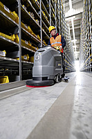 With a working width of 51 cm and the compact 50 litre large tanks for fresh water and dirty water, our manoeuvrable scrubber dryer BD 50/50 C Classic Bp Pack provides an optimal overview of the area to be cleaned. The very quiet disc brush head as well as the battery capacity allow cleaning applications up to 2 hours long �?? also in noise-sensitive areas.