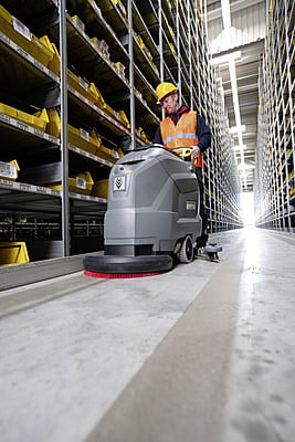 With a working width of 51 cm and the compact 50 litre large tanks for fresh water and dirty water, our manoeuvrable scrubber dryer BD 50/50 C Classic Bp Pack provides an optimal overview of the area to be cleaned. The very quiet disc brush head as well as the battery capacity allow cleaning applications up to 2 hours long – also in noise-sensitive areas.