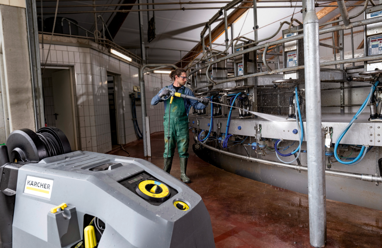 The HDS 10/21-4 M is one of the most powerful hot water high-pressure cleaners in the middle class and also impresses with its sophisticated ergonomics and high level of user-friendliness. Its low-speed, 4-pole and water-cooled electric motor, the robust 3-piston axial pump with ceramic piston and the economical eco!efficiency mode simultaneously ensure maximum performance and reliable, economical operation. The energy-saving EASY!Force Advanced HP trigger gun with servo control and 1050-millimetre-long spray lance with patented nozzle technology as well as the EASY!Lock quick-release fasteners are also included as standard for fatigue-free and time-saving work. Many other equipment and performance details are also impressive, such as the optimised burner engineering, the 2 detergent tanks, the convenient mobility concept, the extensive safety technology, the simple operation with just one switch or the clever accessory storage options.