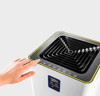 Displays temperature, air humidity and quality, and filter and device status.4 rotating rollers