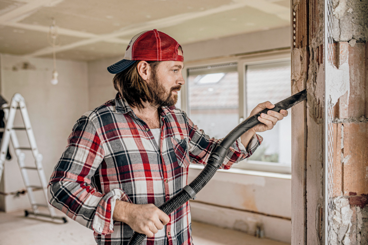 Dirt that is a result of planing, sawing or grinding is suctioned away directly. The vacuum cleaner is switched on and off automatically via the power tool.