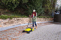 Whether it is petals in spring, sand in the summer, leaves in autumn or grit in winter: The effective and ergonomic S 4 Twin sweeper from K??rcher ensures dazzling appearances around the house and garden in record time all year round. With its powerful roller brush, 2 side brushes and a sweeping width of 680 mm in total, it effortlessly sweeps areas of up to 2400 m?? per hour. The machine transports the waste directly into the 20 litre waste hopper. The long bristles of the side brushes ensure thorough cleanliness right to the edge. The infinitely variable push handle can be optimally adapted to the height of the respective user. Thanks to the bayonet fitting screws can no longer get lost when adjusting the height. The sweeper can be easily collapsed as required without stooping thanks to a footplate at the frame and carried by the handle �?? for space-saving storage. The tool-free side brush attachment is unique. The sweeper is ready for use in no time. The waste hopper can be easily removed and safely put down and emptied without any contact with dirt.