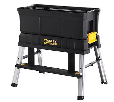 The STANLEY FATMAX FMST81083-1 is an innovative 3-in-1 solution combining a tool box, step stool, and raised tote. It transitions seamlessly between functions, with foldable stainless aluminium legs, safety locks, and dual-use side latches?making it perfect for tradespeople and home users needing storage and elevation in one compact unit.