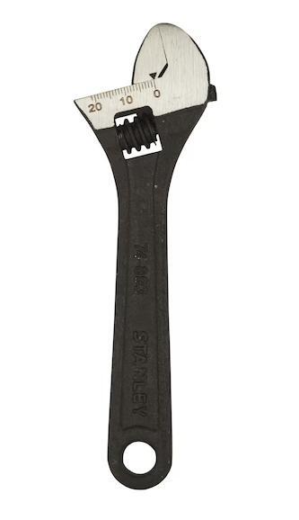 The robust STANLEY Bi-Material Adjustable Wrench 150mm/6?incorporates a bi-material handle that delivers impressive grip and control, plus excellent comfort in repetitive or strenuous applications. The parallel jaws are placed at a 15� angle to ensure a firm grip and best possible reach. The clear metric and imperial scales afford a high level of accuracy, while the built-in hanging hole permits the tool to be tethered on a lanyard, as required. A protective phosphate finish provides extensive product life. Additional Features BI-MATERIAL GRIP: Guaranteed comfort of use and ultimate control METRIC/INCH SCALES: Maximizing the tightening applications APPLICATIONS: Use for construction, plumbing, automotive & home uses HANGING HOLE: Allowing to hang or secure the tool with a lanyard AVAILABLE IN 4 DIFFERENT LENGHTS: 300mm 12in., 250mm 10in., 200mm 8in. and 150mm 6in. with a maximum jaw width of 32mm