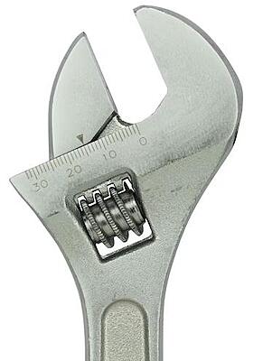 300 mm (12-inch) adjustable spanner, crafted from forged chrome-vanadium steel with a polished chrome finish.