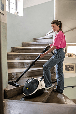 - Floor cleaning set with steam vacuum function: Three different applications for hard and carpeted floors and two 0.5 m-long steam suction tubes