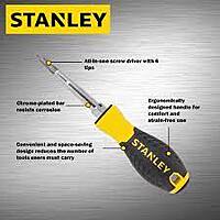 The STANLEY STHT68012-8 is a versatile 6-in-1 screwdriver designed for both professionals and DIY enthusiasts. Its compact design and quick-change mechanism make it ideal for various applications, including automotive repairs, electronics, and general household tasks. Specifications Model: STHT68012-8 Handle: Ergonomically designed with a slip-resistant rubber grip for comfort and control Material: Chrome-plated bar resists corrosion Design: Compact and space-saving, reducing the number of tools users must carry Includes: 1/4" Standard (Slotted) 3/16" Standard (Slotted) #1 Phillips? #2 Phillips? 1/4" Nut Driver 5/16" Nut Driver
