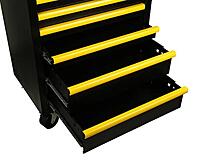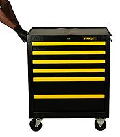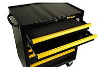 Crafted with a robust metal frame, the Stanley STST98182-1 roller cabinet offers a combination of strength and functionality. The six drawers are equipped with soft-closing ball bearing slides, each with a load capacity of 45 kg, providing smooth operation and ample storage for tools and accessories. The central locking system ensures security, while the worktop offers a sturdy surface for various tasks. The cabinet's dimensions are 86 cm (H) x 68 cm (W) x 46 cm (D), and it weighs approximately 44 kg, making it suitable for both professional and home workshop settings. Specification Model : STST98182-1 Material : Metal Color : Black/Yellow Dimensions (L x W x H) : 68 cm x 46 cm x 86 cm Weight : 44 kg Drawer Capacity : 45 kg per drawer Trolley Capacity : 300 kg Number of Drawers : 6 Drawer Slides : Soft-closing ball bearings Locking System : Central Wheels : 4" (2 locking, 2 pivoting) Worktop Load Capacity : 300 kg Handle Type : Metal Compatibility : R.A.T. system, STANLEY module system