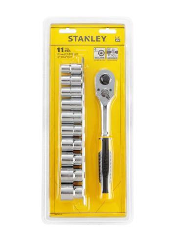 The Stanley STMT45501 is an 11-piece 1/2-inch drive metric socket set featuring a pear-head ratchet with a 72-tooth mechanism, offering a 5� swing arc for tight spaces. The set includes six-point sockets ranging from 12 mm to 24 mm, all crafted from chrome vanadium steel with a polished chrome finish for durability and corrosion resistance. Specification Model : Stanley STMT45501 Drive Size : 1/2 inch square drive Ratchet Type : Pear-head with 72-tooth mechanism Socket Points : 6-point configuration Material : Chrome vanadium steel Finish : Polished chrome-plated Socket Sizes : 12 mm, 13 mm, 14 mm, 16 mm, 17 mm, 18 mm, 19 mm, 21 mm, 22 mm, 24 mm Storage : Includes socket rail for organization Applications : Suitable for automotive and mechanical maintenance tasks