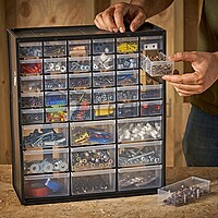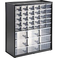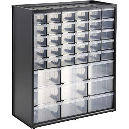Crafted with a high-density polypropylene base structure, the Stanley 1-93-981 storage bin offers robust durability and long-lasting performance. The 39 compartments are arranged to accommodate various sizes of items, with 30 small drawers and 9 larger ones, providing flexibility in storage. Its compact dimensions (36.5 cm width, 44.5 cm height, and 16 cm depth) make it suitable for spaces where organization is paramount. The unit's design allows for stacking multiple bins or mounting them on a wall, optimizing space and enhancing accessibility. Specification Model : 1-93-981 Material : High-density polypropylene Frame : Durable resin Number of Compartments : 39 (30 small, 9 large) Dimensions (W x H x D) : 36.5 cm x 44.5 cm x 16 cm Weight : Approximately 2.1 kg Mounting Options : Stackable, wall-mountable Ideal For : Organizing small parts, tools, and accessories