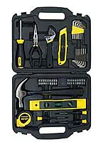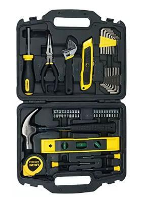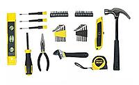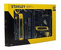 The Stanley STHT74981 is a comprehensive 47-piece home tool set designed for everyday maintenance, repairs, and DIY projects. Housed in a durable, compact case, this set includes essential tools such as a 3m measuring tape, 12 oz hammer, precision screwdrivers, long nose pliers, magnetic bit driver with 20 bits, 16 hex keys, a 9" torpedo level, and a utility knife.