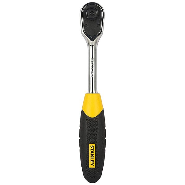 The STANLEY STMT95894-8B is a 3/8" drive pear head ratchet designed for durability and ease of use. Crafted from high-quality chrome vanadium steel, it features a quick-release mechanism for secure socket retention and easy removal. The ergonomic bimaterial handle offers a comfortable grip, while the compact pear head design allows access to tight spaces. Ideal for automotive, industrial, and general maintenance tasks.