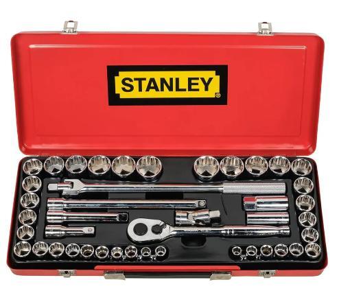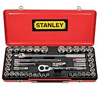This socket set is ideal for automotive repairs, mechanical work, and general maintenance tasks. The 12-point sockets provide a secure fit on fasteners, reducing the risk of rounding. The pear head ratchet offers a compact design for access in tight spaces, and the quick-release mechanism allows for easy socket changes. The inclusion of extension bars and a universal joint enhances versatility, enabling users to reach fasteners in difficult positions. The set's organization in a sturdy case ensures that all components are kept in place and readily accessible. Specification Model : STMT45505 / 89-509 Drive Size : 1/2" Square Drive Socket Points : 12-Point Material : Chrome Vanadium Steel Ratchet Type : Pear Head with Quick-Release Included Accessories : Extension Bars, Universal Joint, Spark Plug Socket Number of Pieces : 43 Storage Case : Yes